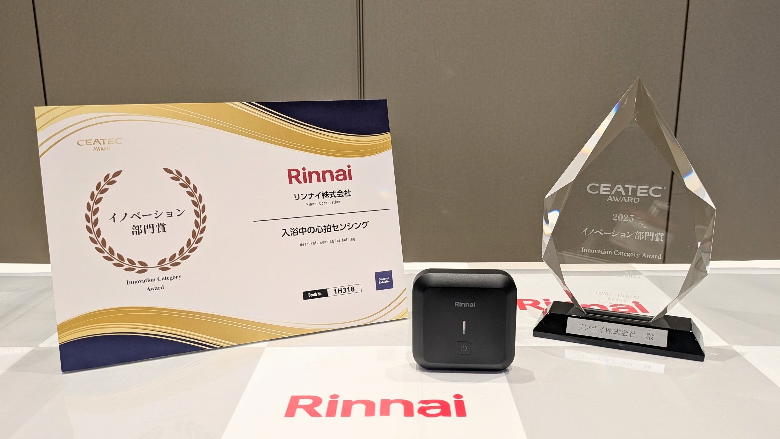 リンナイ株式会社(本社:愛知県名古屋市、社長:内藤 弘康)は、浴槽内心電計測モジュールがCEATEC 2025において「CEATEC AWARD 2025」イノベーション部門賞を受賞しました。